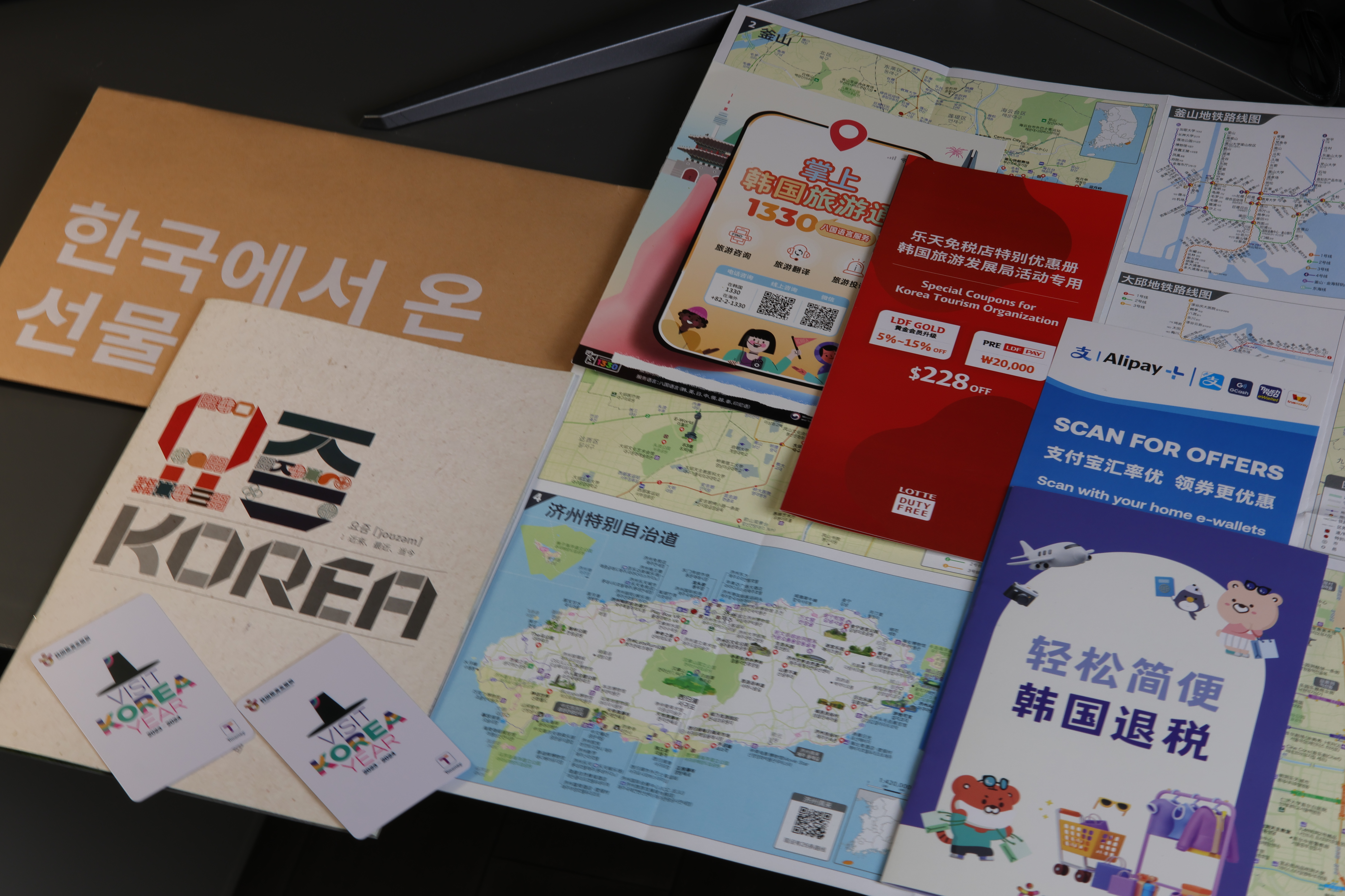 赴韩大礼包里面就是这样的几个人就有几张公交卡还有地图和优惠券等,卡里面是没有钱的需要到那边后找便利店充值,等于是免了卡费,卡里的钱也可以在便利店使用,很方便,不过走的时候卡的钱可以退,但是要扣除手续费500韩元哦。