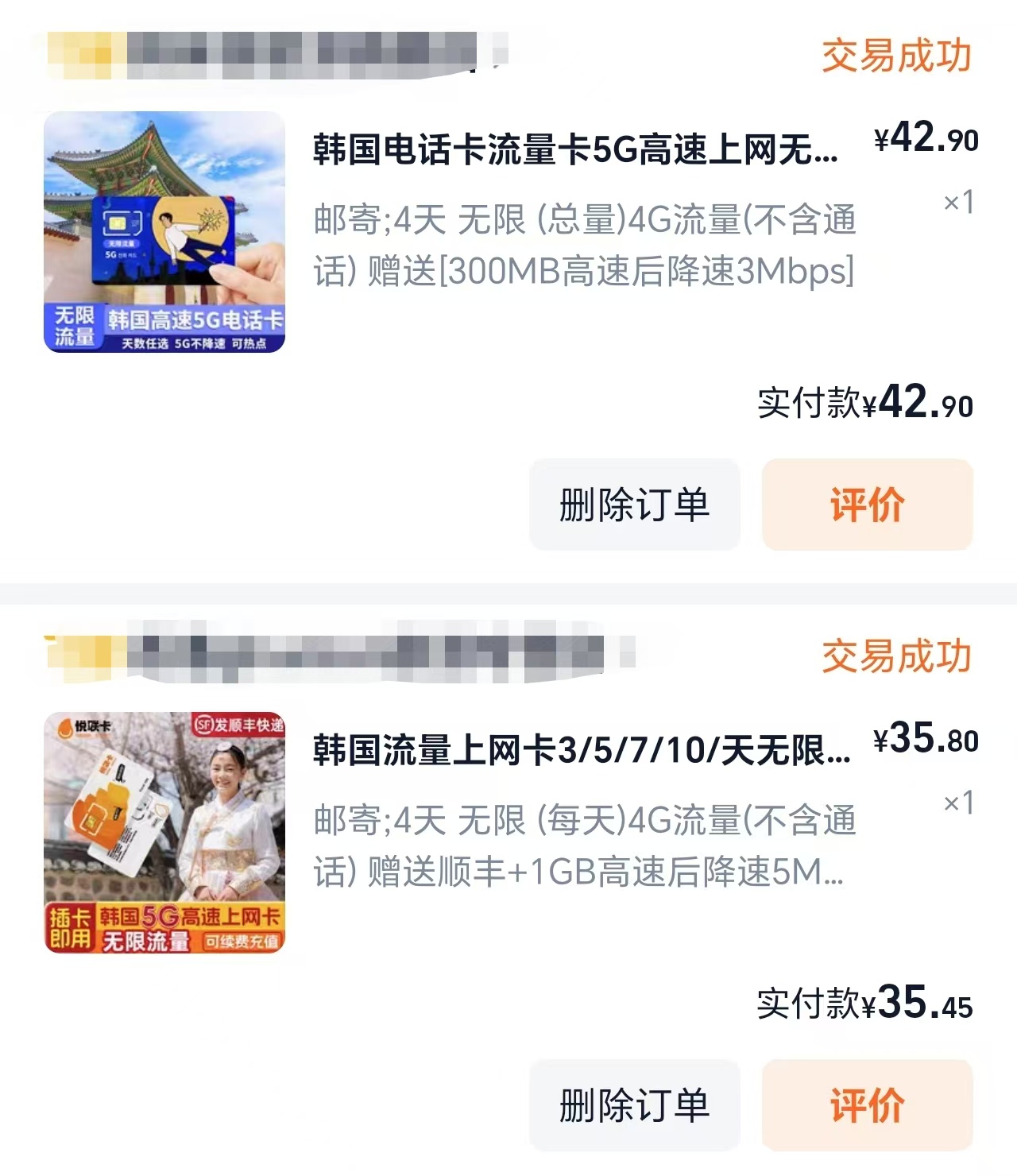 - 通讯准备-韩国电话卡/流量卡(推荐提前在国内购买流量卡哦,到地方买很贵,如果航班很晚落地的话可能买不到了,我就是在国内买的两张流量卡,Taobao上购买的)
