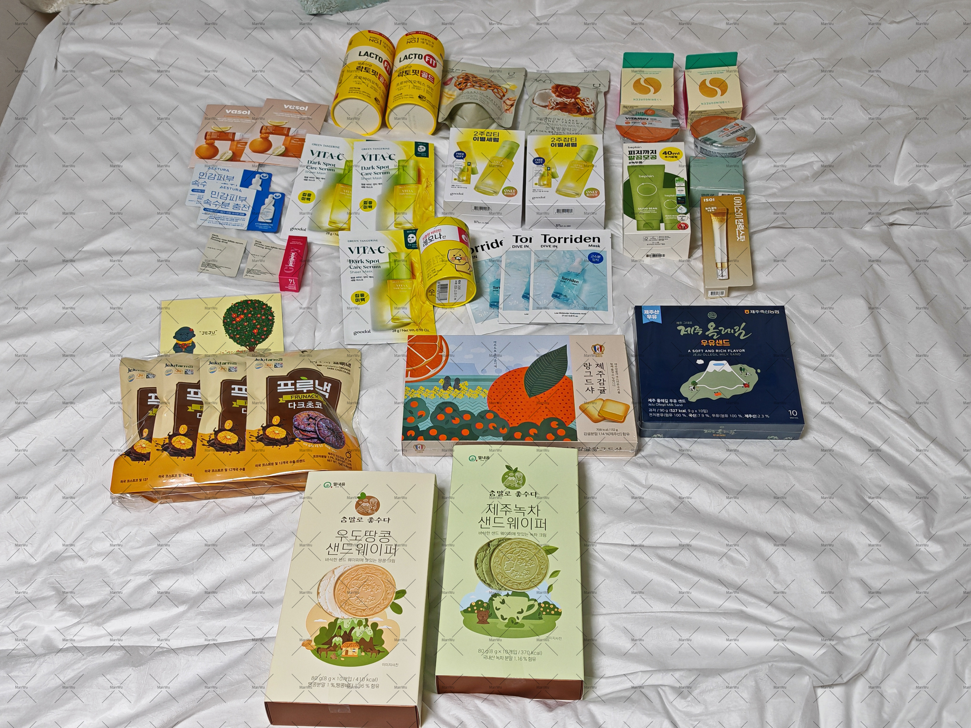 我们在济州岛最大的一笔消费就是在这里,我们差不多买了1000多人民币的东西,退税也退了好多,满3万韩元就可以直接退税,现在基本就是你满了,收银员会直接向你要护照的,你直接给他,他会当场给你退好税现金给你。这个就是该有的都有,像什么小道那种零食,尤其是那个碱水饼干特别好吃,然后还有面膜,洗面奶,内服的像vc,像益生菌,基本都有。店呢其实也不算很大,但是就是很好逛,我们差不多下午1点多快2点的时候开始逛逛到了差不多快5点了,就一直来回看来回买,我们看的这家就是在乐天免税店出门右转走过一个红绿灯就到了,他是在2楼。然后大家买的话看清楚, 容量什么的,自己是否有托运,我们没有托运,然后我买了一个超过100毫升的洗面奶,海关不让我们上,然后我就直接把它丢掉,我不要了,这个是一个惨痛的教训,所以买之前一定要看一下