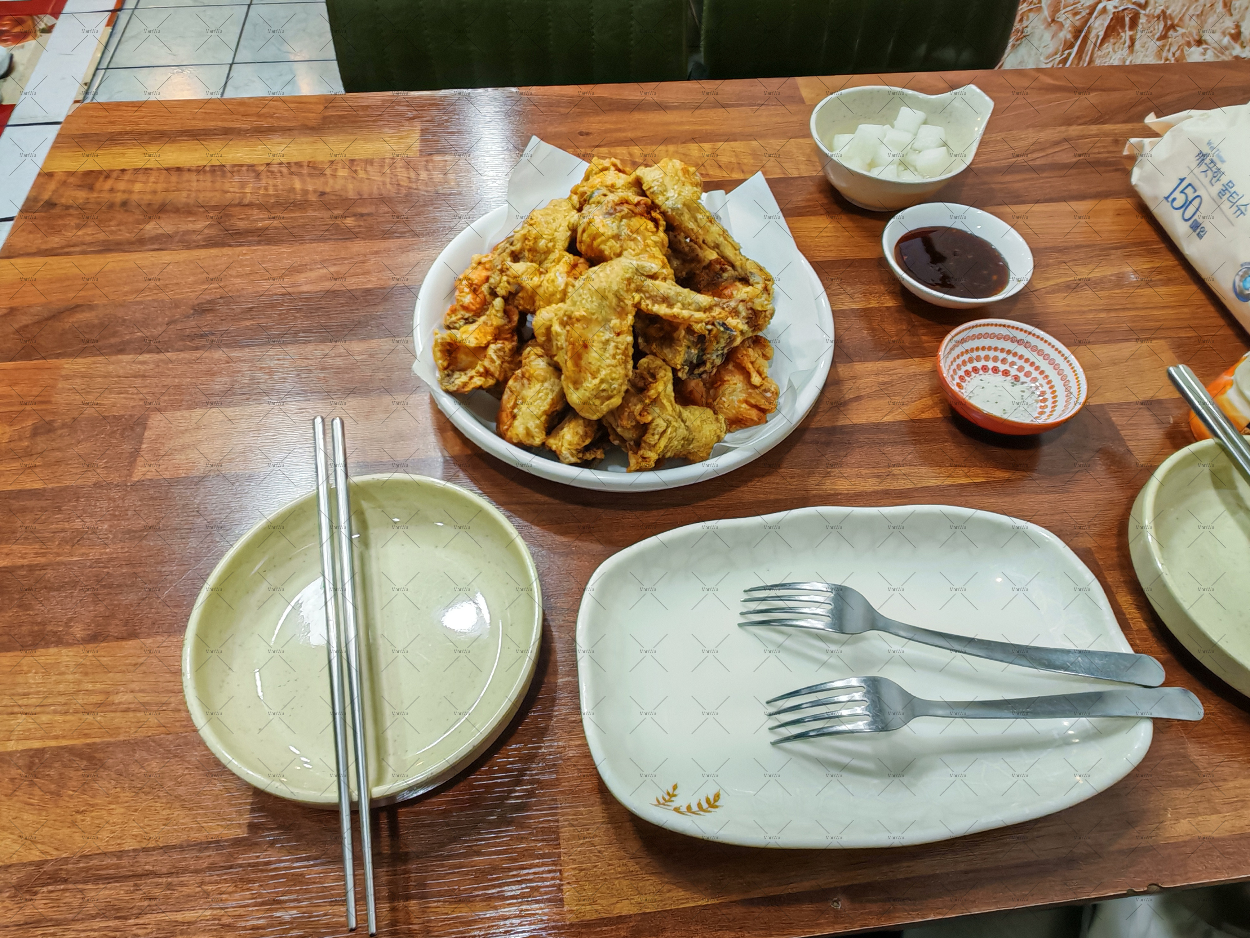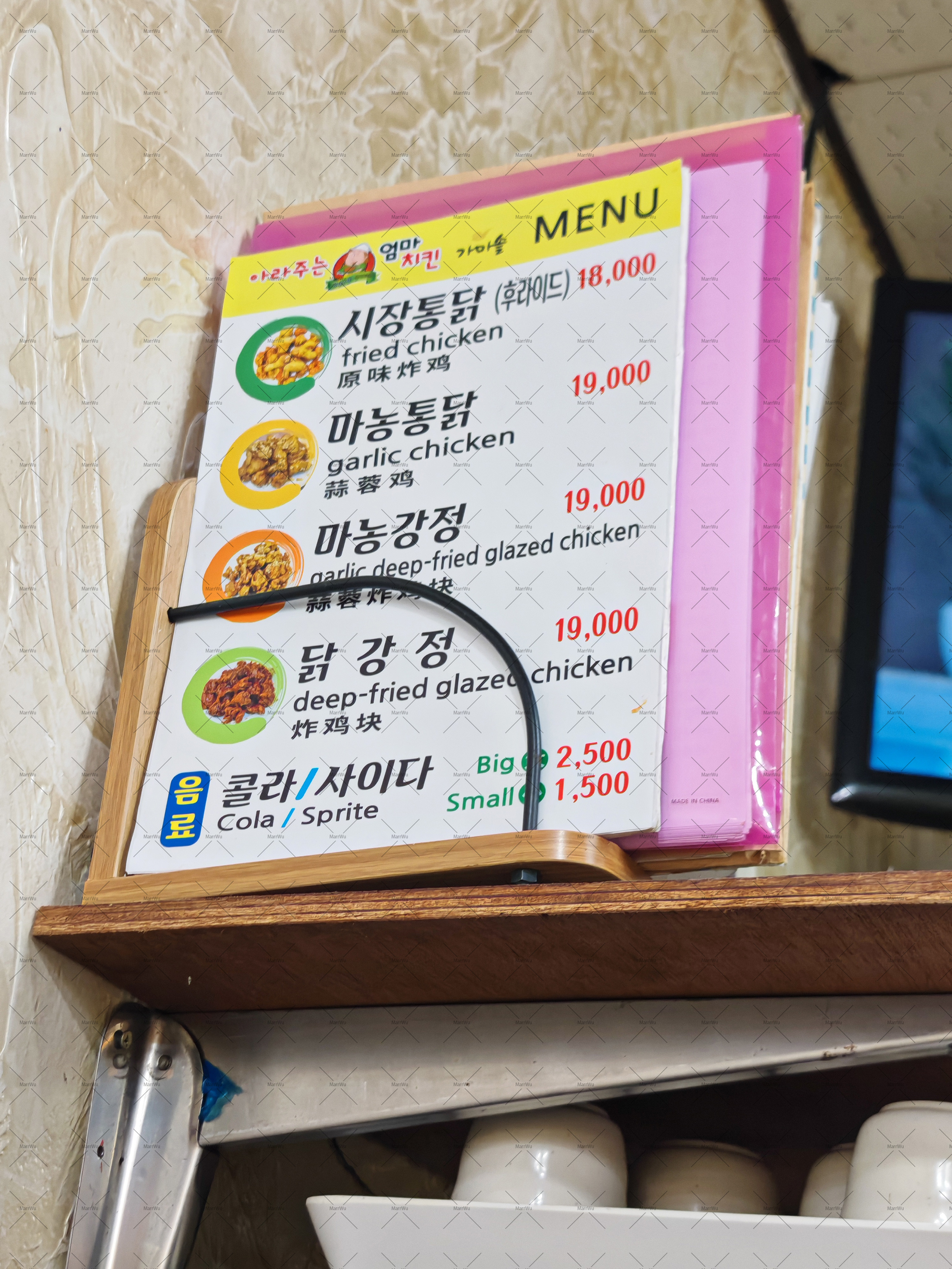 那天我们到了东门市场之后,不知道吃什么,然后我们就一直在找店,然后我们路过一家炸鸡店门口的时候在徘徊,这是一家夫妻店开的,年纪中年了,对我们十分的热情让我们进来,店里一共有三张桌子,位置不大,但是十分的干净,我看了他们的炸鸡都是现裹起来的,不是那种袋子预制的,这点韩国做的很不错。当时我们不知道这个炸鸡的分量,然后准备点两份原味炸鸡,结果那个老板说,我们两个人吃不了这么多,一份都吃不完的,然后我们就点了一份,这一份炸鸡真的超大超大,还送了韩国的萝卜,味道酸酸甜甜的,也非常不错。这一份炸鸡三个人吃差不多,两个人吃的话会有点腻。但是吃上这个炸鸡,就是和国内预制的完全不一样,最后吃不完,我们还打包了,老板也是非常的热情和我们说再见。这家店就位于,4号门那边,就是快靠近很火的鱿鱼摊位那边了。