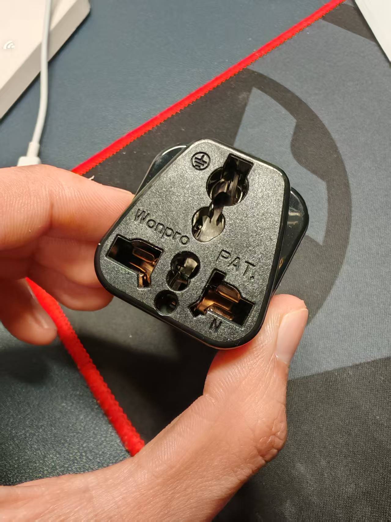 好了,我要批评这个了,为什么插上去会掉?这个很大一个,韩国的插座只能刚好插入前面那个小的,还有卡扣,这个公牛的没有卡扣,我在那边用的时候很气人,只能拿个东西顶着,如果有懂行用过的朋友可以说一下。