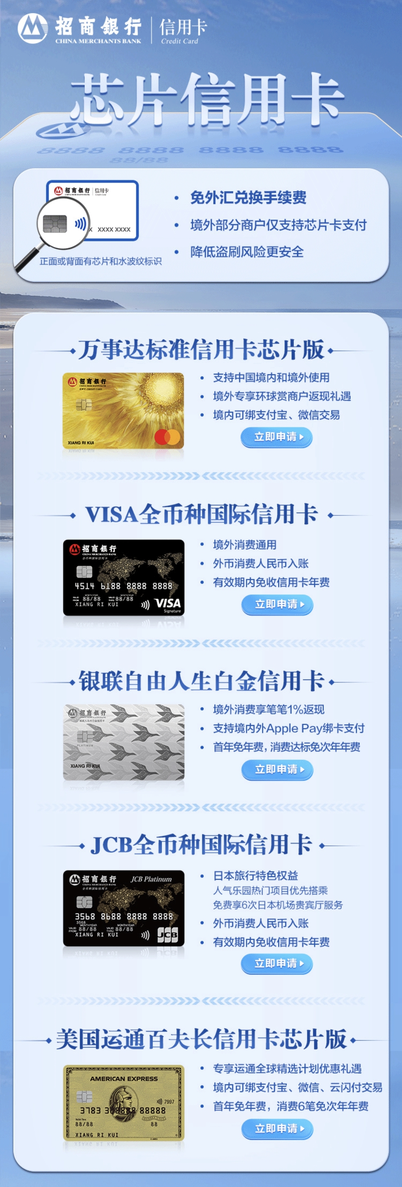 我们可以看到招商银行基本每家卡商,都支持,并且也可以看到很多都是免年费,有返现有很多活动,并且是在全世界各地都可以用的。